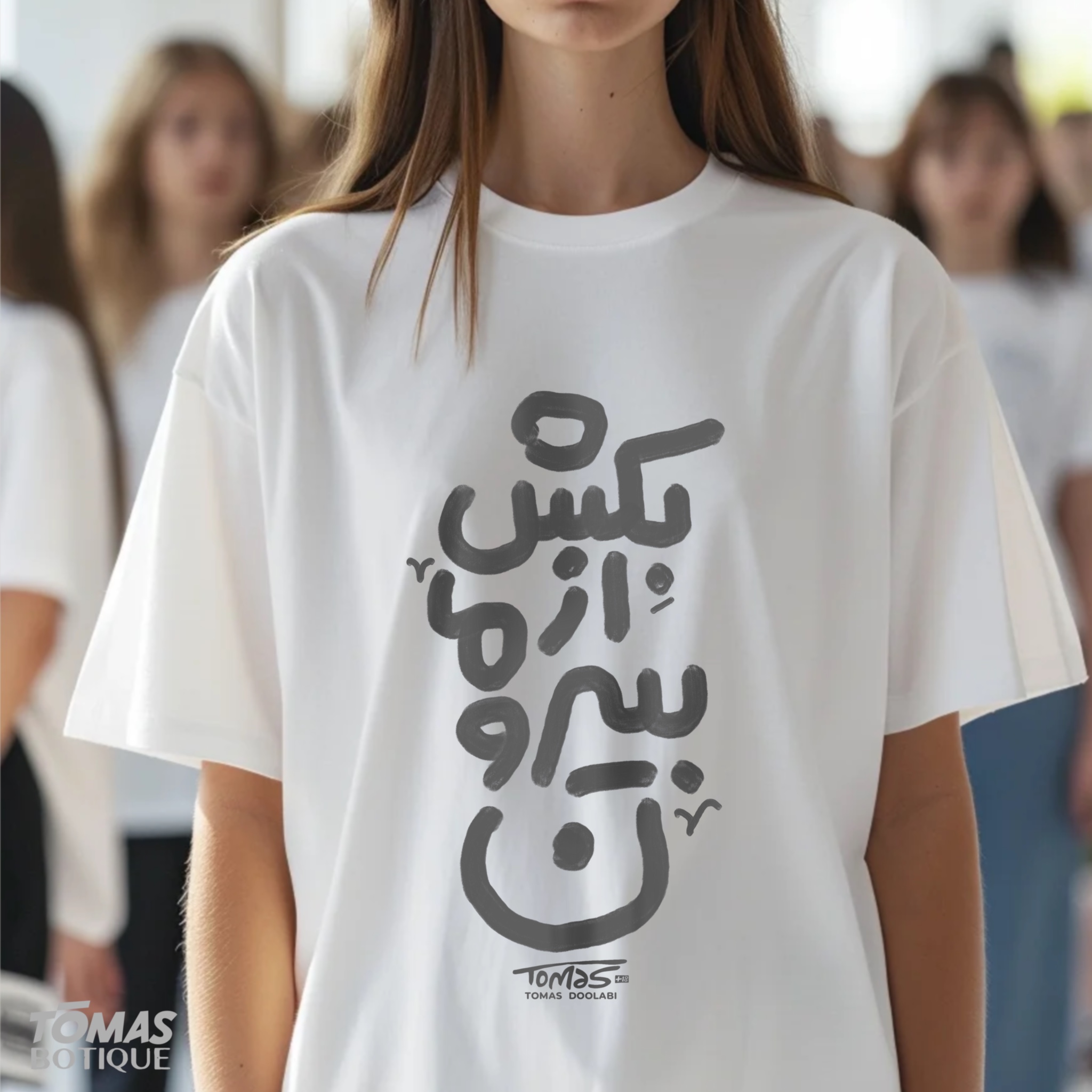 دو رنگ سفید ( پیشنهادی) و مشکی / ارسال ده روز کاری / ارسال فقط با پست  / سوپر پنبه / کیفیت چاپ بالا /برای سفارش سایز چاپ A2 ,A5 و همچنین کاستوم کردن طرح به دایرکت پیج فروش اینستاگرامی توماس tomasbotique  مراجعه کنید. / راهنمای سفارش تیشرت را حتما مطالعه کنید